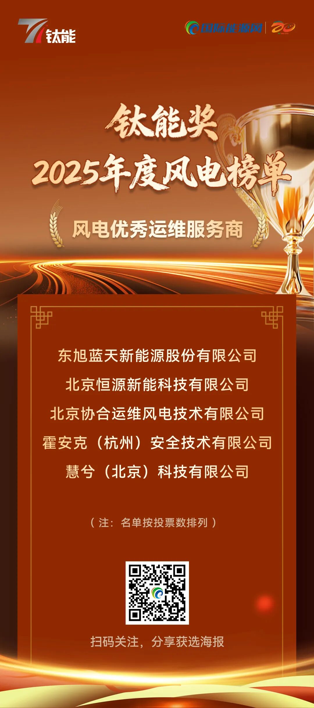 钛能奖·2025年度风电榜单已揭晓榜单如下: