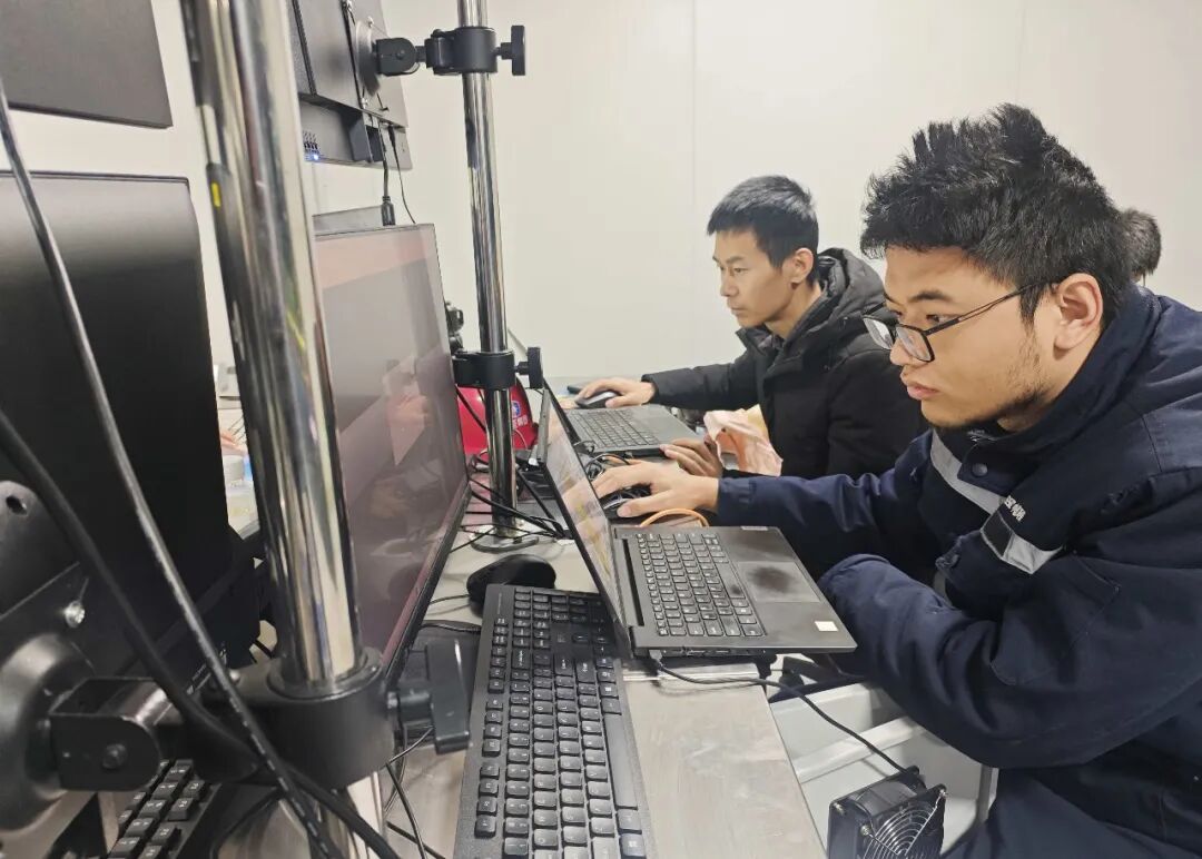 12月的锡林郭勒草原,最低气温接近零下30摄氏度,凛冽的寒风如利刃般呼啸,给机组调试并网带来重重考验。但困难面前,项目成员奋战冲刺的热情丝毫未减,他们与时间赛跑、与严寒较量,手指冻得僵硬就搓一搓继续操作,脸颊被寒风吹得刺痛就裹紧围巾咬牙坚持。研发技术人员俯身细致排查每一处线路、精准调校每一项参数,确保设备运行万无一失;运维人员往返穿梭在各台机组之间,一丝不苟完成各项检测,不放过任何一个细微隐患。从首台并网调试到完成最后一台机组的成功并网,项目团队谱写了一曲在极寒中鏖战48小时的奋斗赞歌。
